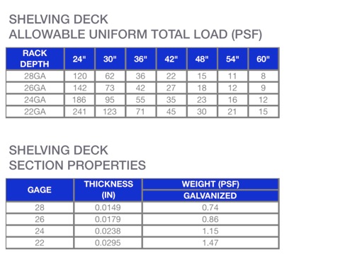 Solution: 142 PSF = 26GA SHELVING DECK